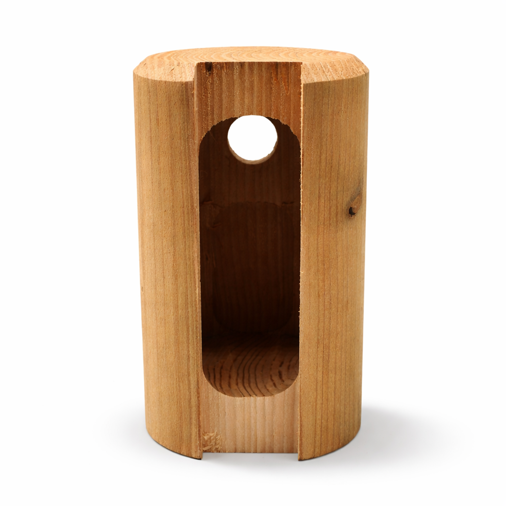 Fixez-le entre 1,5 et 3 mètres de hauteur, orientez l’ouverture vers l’est ou le sud-est et choisissez un emplacement calme, à l’abri des vents dominants et des passages fréquents. Le nichoir doit être solidement fixé à un arbre, un mur ou un support stable, sans exposition prolongée en plein soleil.